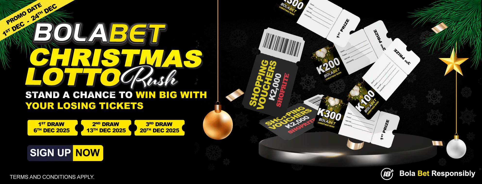 Get ready to turn your “almost wins” into real prizes with Bolabet’s Christmas Lotto Rush Retail Losing Ticket Promotion, starting on 01 December 2025 to 24 December 2025. Every losing ticket gives you a chance to win a share of K37,800 in weekly betting vouchers, with weekly draws throughout the promotion period.