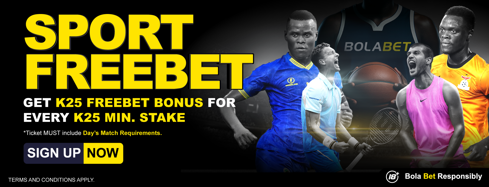 These terms govern your participation in the Sport Freebet Promotion offered by Bolabet Company Limited (“Bolabet”). By participating in this promotion, you agree to comply with these terms, Bolabet’s Terms and Conditions of Use and Bolabet’s General Betting Rules, which are all available in store and on the Bolabet website at www.bolabet.co.zm.